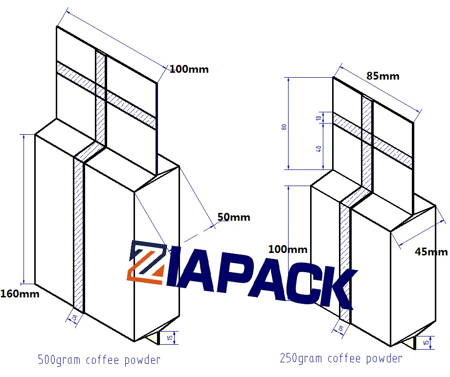 Бұл машина ZL520 тік қапшықты орау және тығыздау машинасының бір жиынтығын қамтиды. Бір жиынтық ZL2000 шнек өлшеуіш машинасы, бір жиынтық ZL100V2 қос вакуумдық камералы орау машинасы және бір жиынтық шығару конвейері. Машинада қаптарды қалыптастыру, өнімді толтыру, сөмкелерді тазалау функциясы бар. және шаңсорғыш .Кофе кірпіштен жасалған вакуумдық қапшықта күнді кодтау үшін танымал болып табылатын термиялық тасымалдау кодтау машинасын таңдай алады. Бұл машина азық-түлік дәріханасының химиялық және басқа да өнімдерін ұнтақ немесе ұсақ түйіршікте орау үшін кеңінен қолданылады. Кофе ұнтағы, ашытқы ұнтағы бидай ұны және т.б. сияқты. Бүкіл машина вакуумдық өнімді соруға қабылдайды. Вакуум деңгейі өте жоғары және орау жылдамдығы өте жоғары, 8 қап/мин жетуі мүмкін. Дайын өнім өте жақсы және ұзақ сақтау мерзімі.