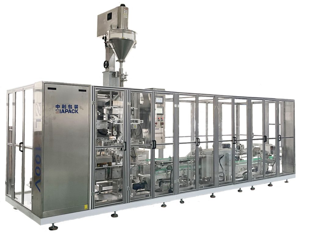 Бұл машина бір жинақты ZL520 тік қапшықты орау және тығыздау машинасын қамтиды. Бір жиынтық ZL2000 шнек өлшеуіш машинасы, бір жиынтық ZL100V жалғыз вакуумды камералық орау машинасы және бір жиынтық шығару конвейері. Бұл машина азық-түлік дәріханасының химиялық және басқа да өнімдерін орау үшін кеңінен қолданылады. ұнтақ немесе ұсақ түйіршік. Кофе ұнтағы, ашытқы ұнтағы бидай ұны және т.б. сияқты. Бүкіл машина вакуумдық өнімді сору арқылы қабылдайды. Вакуумдық дәрежесі өте жоғары және орау жылдамдығы өте жоғары, 8 қап/мин жетуі мүмкін. Дайын өнім өте жақсы және ұзақ сақтау мерзімі.