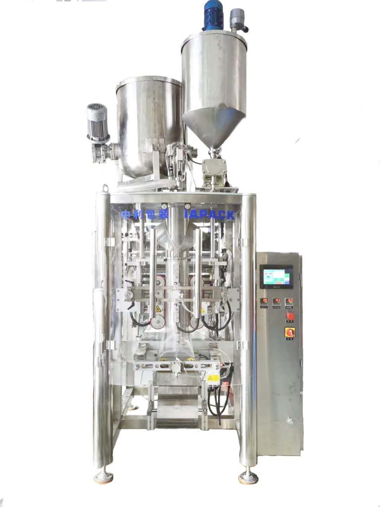 Бұл құрылғы сұйық және тұтқыр өнімдердің қажеттіліктері үшін әзірленген. Қондырғы тегістеу машинасынан және орау машинасынан тұрады; орау машинасының құрылымы қарапайым және оны басқару оңай; машина қап жасау, толтыру, тығыздау және санау функцияларын біріктіреді. Ол пленканы тарту үшін сервомоторды пайдаланады және ауытқуды автоматты түрде түзету функциясына ие.