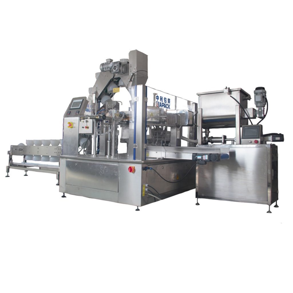 Бұл машина қатты өніммен араластырылған сұйық өнімді, сорпа қосылған маринадталған қияр, маринадталған зәйтүн, маринадталған қияр және т.б. сияқты тағамды алдын ала пісіруге арналған. Қатты өнімді алдын ала дайындалған қапқа салып, содан кейін поршеньді сорғыны толтыруға арналған тостаған элеваторы бар. тұздық.