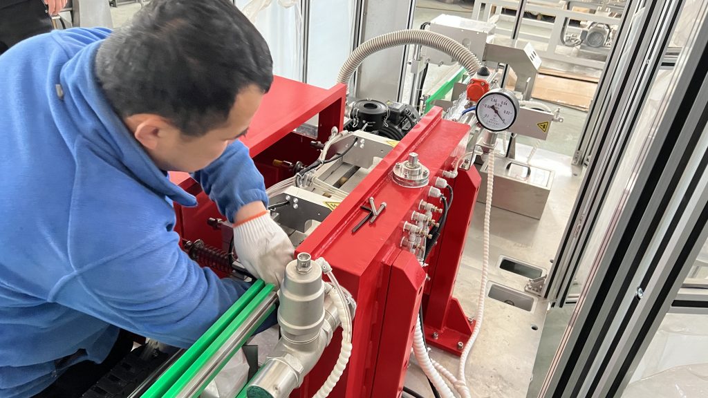 Біздің Ираннан келген клиентіміз 250 грамм кофе ұнтағы үшін толтыру орауыш машинасын қалыптастыратын автоматты кірпіш вакуумды пакетке тапсырыс берді. Және клиенттің талабын орындаңыз, біз вакуум камерасын ескерту ретінде қызыл түске боядық.
