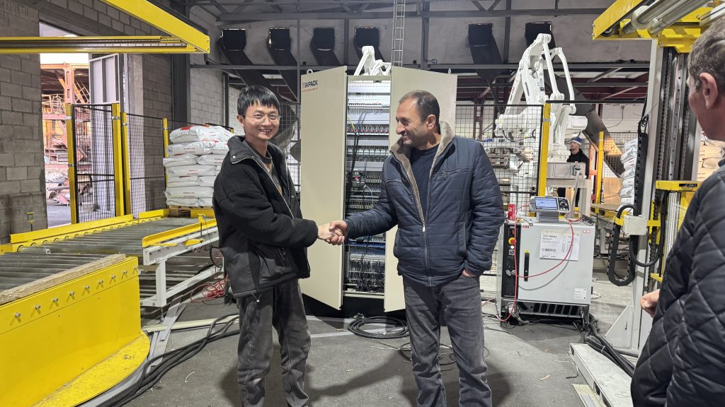 Сен мындасың: Үй » Жаңалықтар » Біздің клиенттік зауытта екі бірлік 25 кг үй жануарларына арналған азық-түлік автоматты таразыға арналған қаптарды тасымалдау және паллеттеу желісі жұмыс істей бастайды.